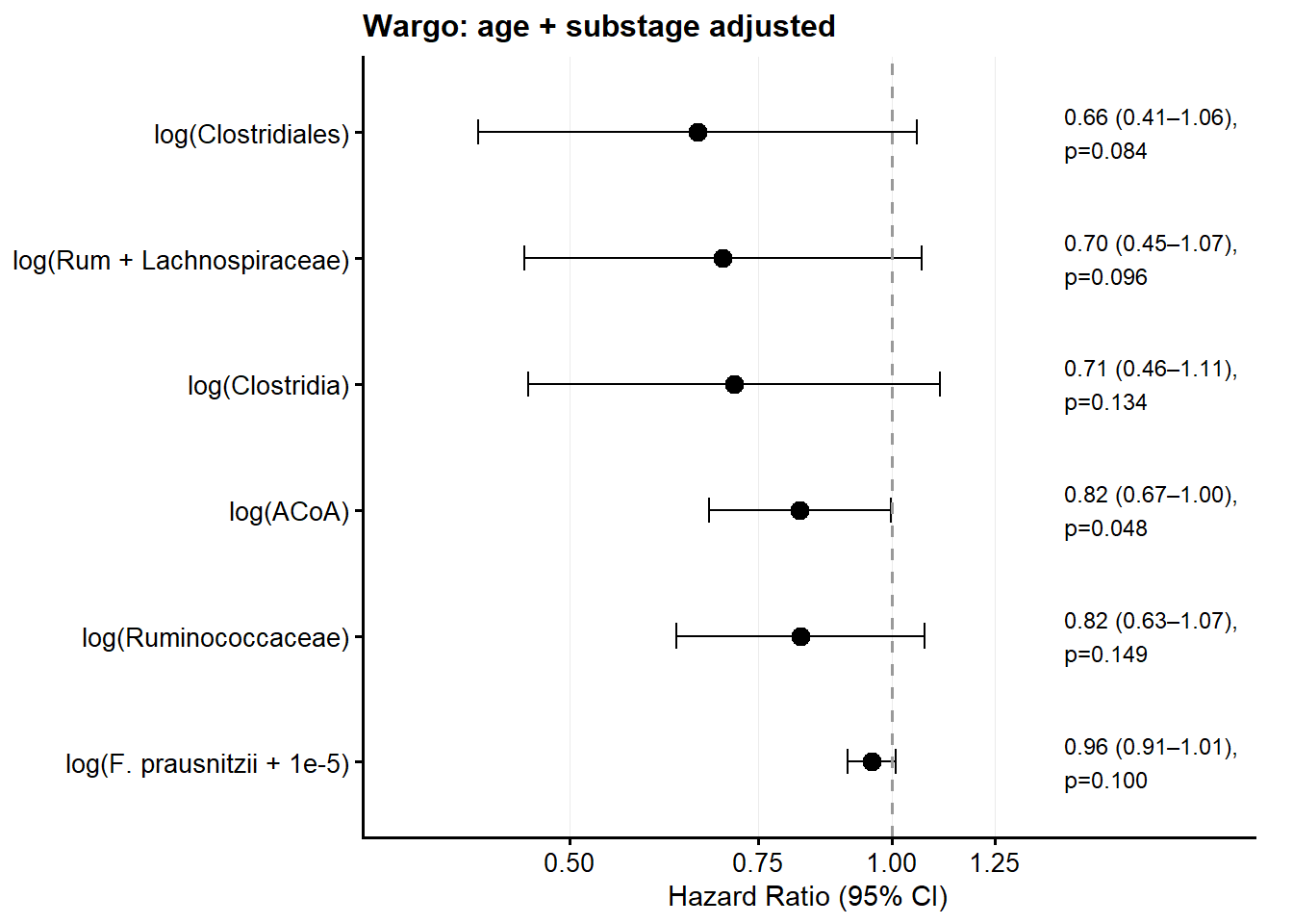 y = NULL , x = "Hazard Ratio (95% CI)" )